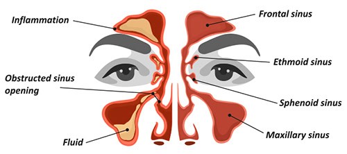 The Sinuses nasal openings have air spaces in the skull. It is present behind the nasal bones, cheeks, eyes, and forehead. Allergic Sinusitis is four types which include: